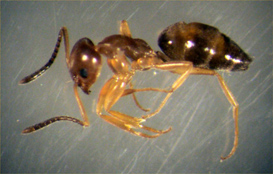 Description: A light brown to black ant 1/16 to 1/8 inch long. Nest outdoors under stones,logs, and in trees. Indoors they nest in floors and wall voids. These ants will travel up to 100 feet from there nest.
