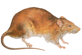 Description: The head and body are seven to ten inches long with a tail six to eight inches long. Rats are nocturnal. Outside Norway rats prefer to nest under sidewalks, and concrete pads, stream/river banks, railroad track beds, and next to buildings. The rat can enter buildings through 1/2 inch and larger gaps. In buildings they prefer to nest in the lower levels of the building, crawlspace, basement, and sewers. Preferred foods are meat, fish, and cereals.